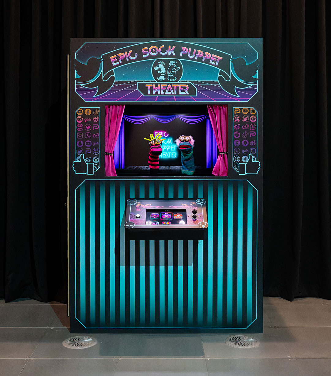 Epic Sock Puppet Theater is an interactive installation featuring animatronic sock puppets that perform social media posts from “sock puppet” accounts known to have engaged in disinformation campaigns. “Sock puppets” are imposter social media accounts created to infiltrate groups, surveil and provoke people, and spread disinformation. The disinformation performed by our animatronics comes from datasets released by researchers, government agencies, and journalists. The goal of these campaigns has been to polarize and divide the public on various topics. To allow viewers to maintain critical distance, the project draws from Bertolt Brecht’s Epic Theater, which emphasizes audience participation and distancing techniques for the presentation of politically charged content.